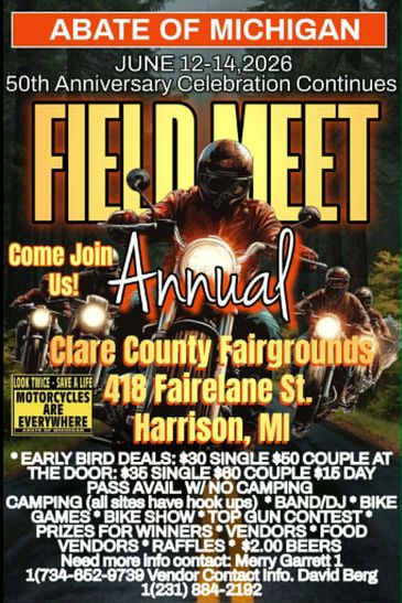 The field meet is next on the list. We have booked the campground in Harrison (same venue as 2025). We will be ordering the beer, grabbing a band maybe two, collecting items for our auction, games are being planned and the bike show is a go!!!! We are even planning the trophies!!! We will hopefully have a top gun challenge again. Everyone seemed to enjoy it even in the rain.